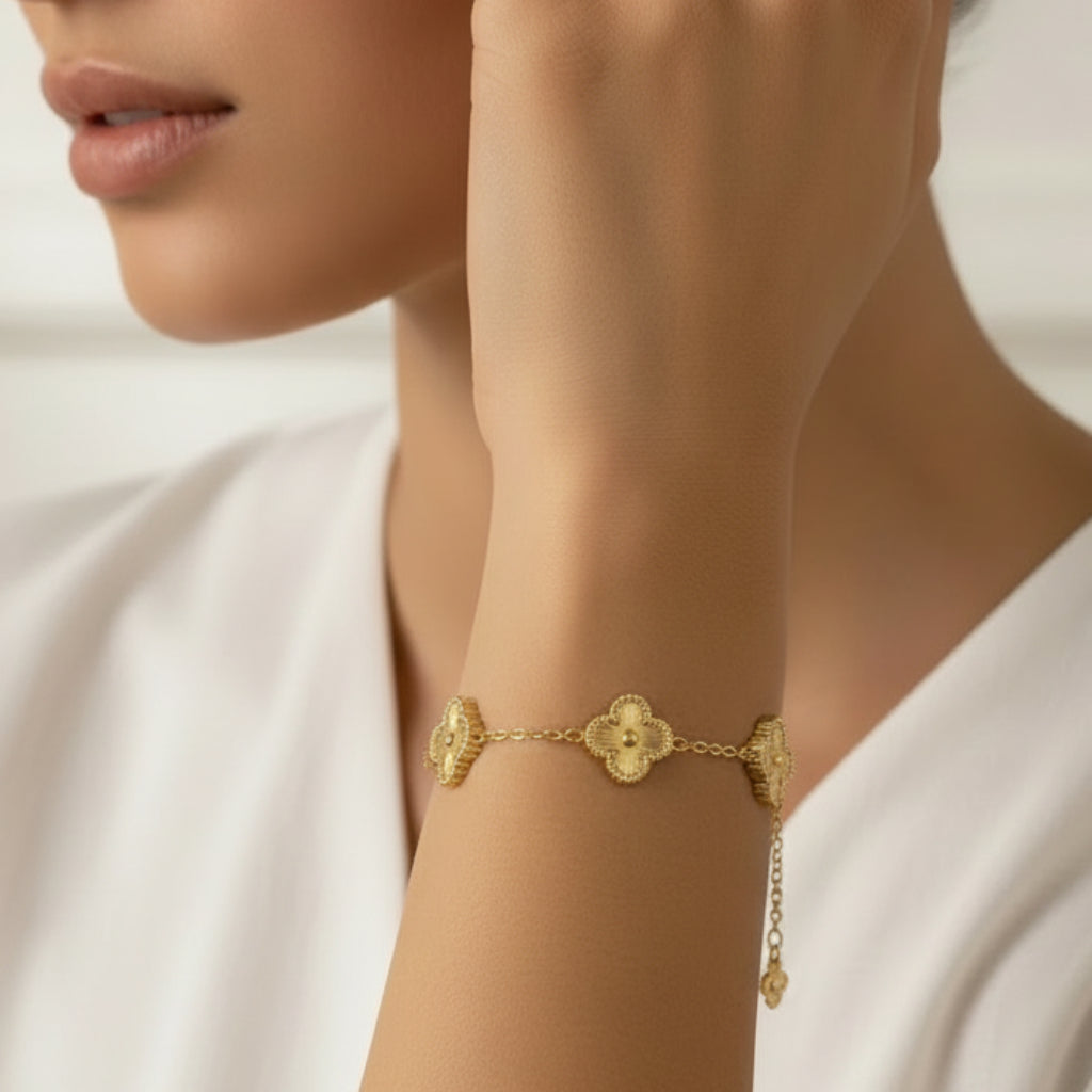 Crafted from high-quality stainless steel and finished with luxurious 18k gold plating, this piece is available in two stunning colors: gold and silver. It measures 18 cm with an additional 4 cm extender (22 cm total), allowing you to adjust it for the perfect fit.