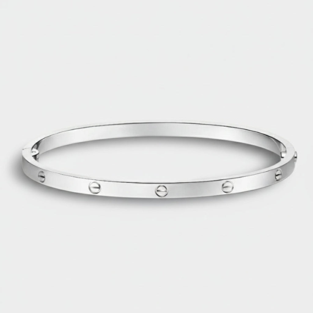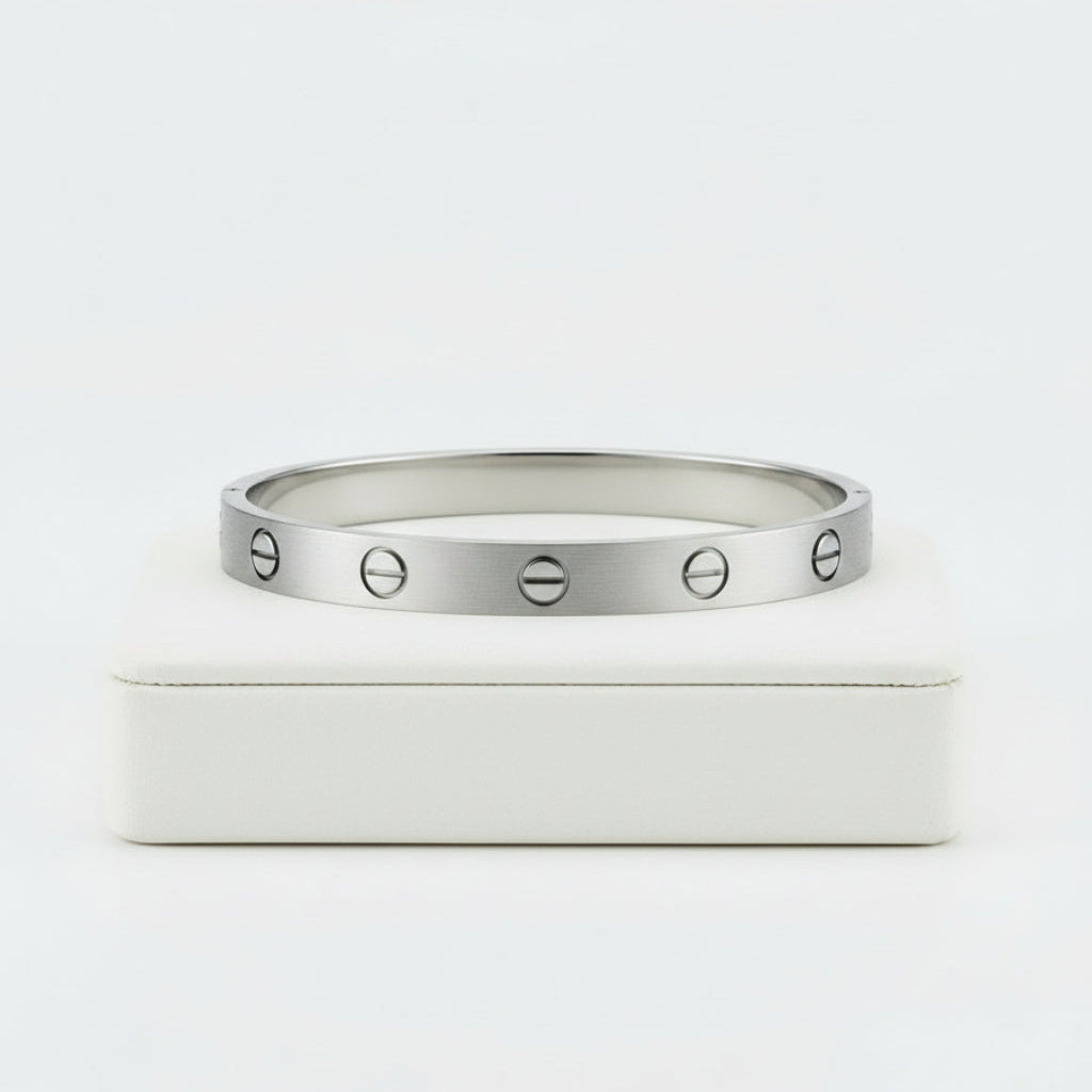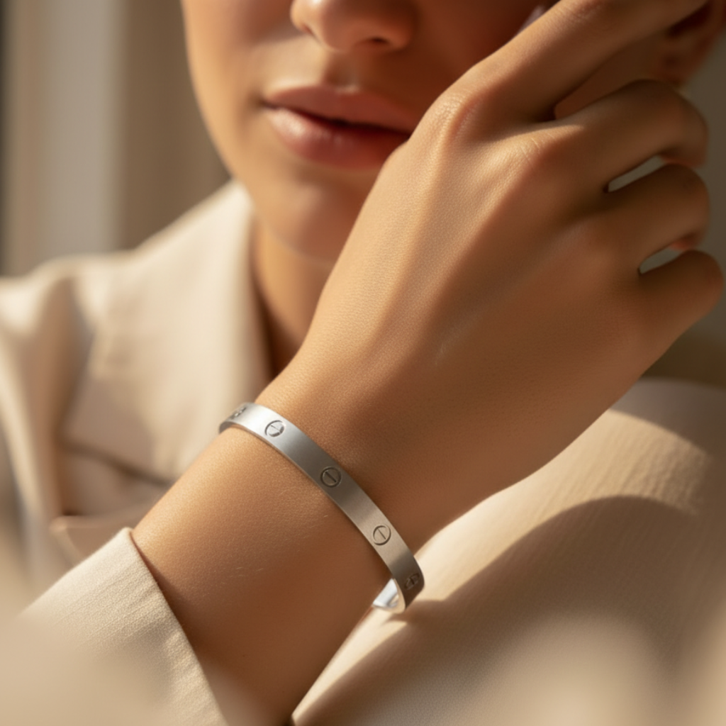 The Lumaire – Eternal Silver Bracelet combines premium stainless steel with a sleek silver finish. Waterproof and durable, it transitions seamlessly from daily wear to special occasions. Its minimalist design offers timeless elegance in three sizes.