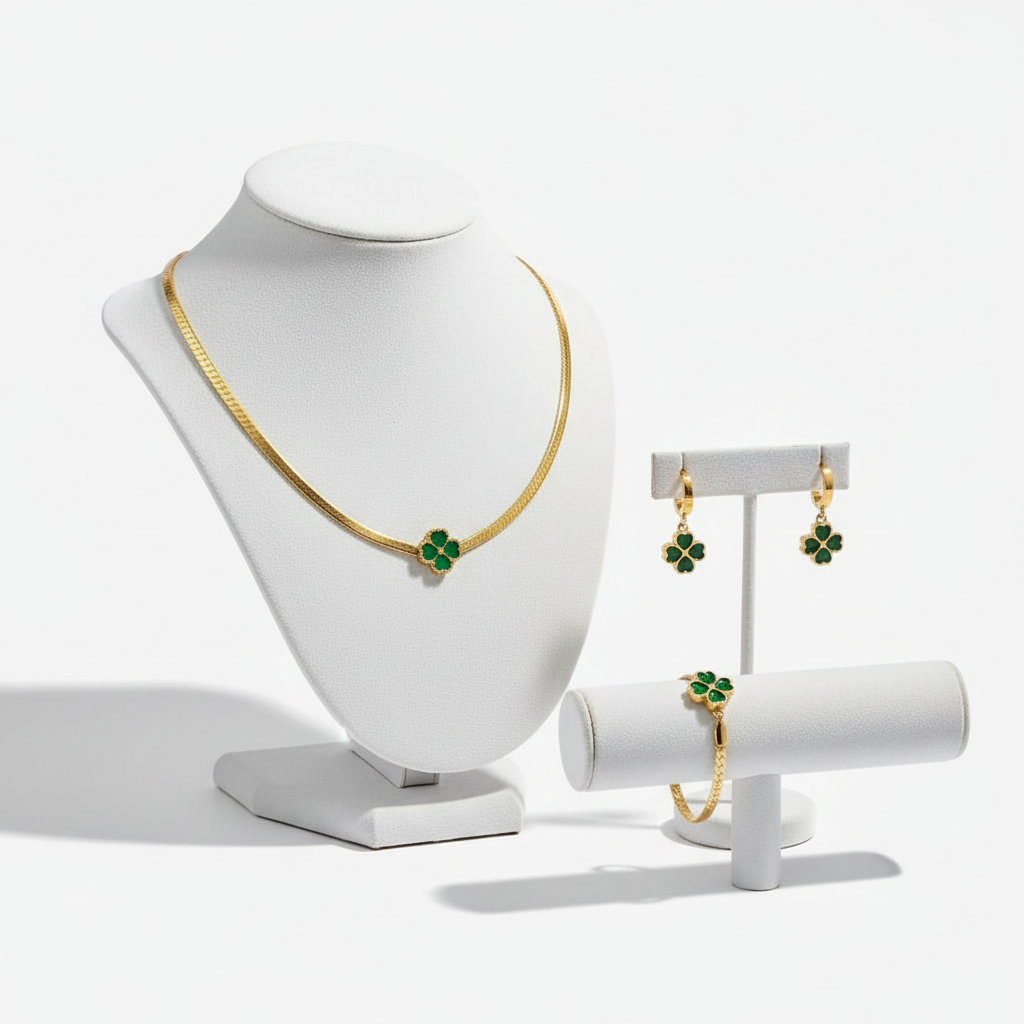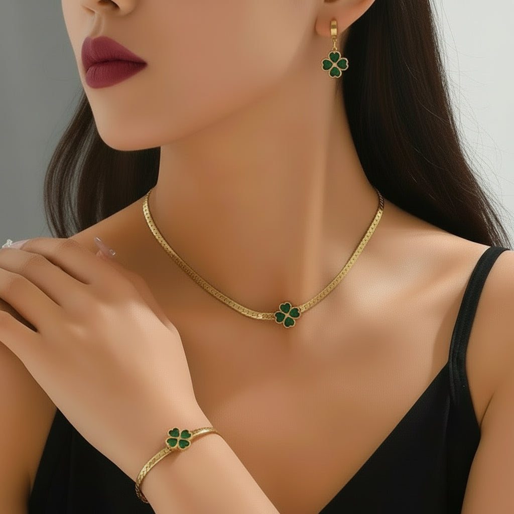 Mila - Emerald Four Leaf Clover Jewelry Set