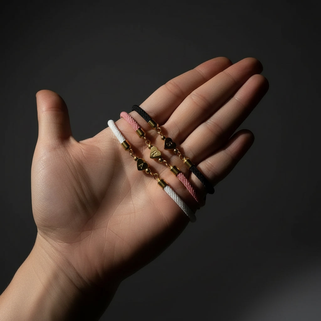 Nora - Adjustable Heart Letter Initial Bracelets Black
