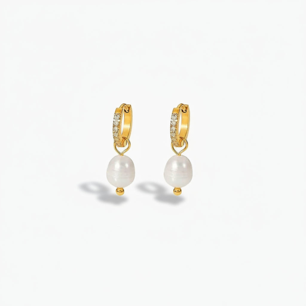 Elevate your everyday elegance with the Ottilie Pearl Earrings, where refined craftsmanship meets sustainable luxury. These sophisticated drop earrings showcase responsibly harvested freshwater pearls suspended from delicate 18k gold-plated stainless steel hoops, delivering a polished aesthetic suitable for any setting. Built to withstand daily wear, the hypoallergenic construction resists water, perspiration, and heat exposure while maintaining its pristine appearance. Each pair arrives in eco-conscious packaging, reflecting a commitment to both personal style and environmental responsibility.