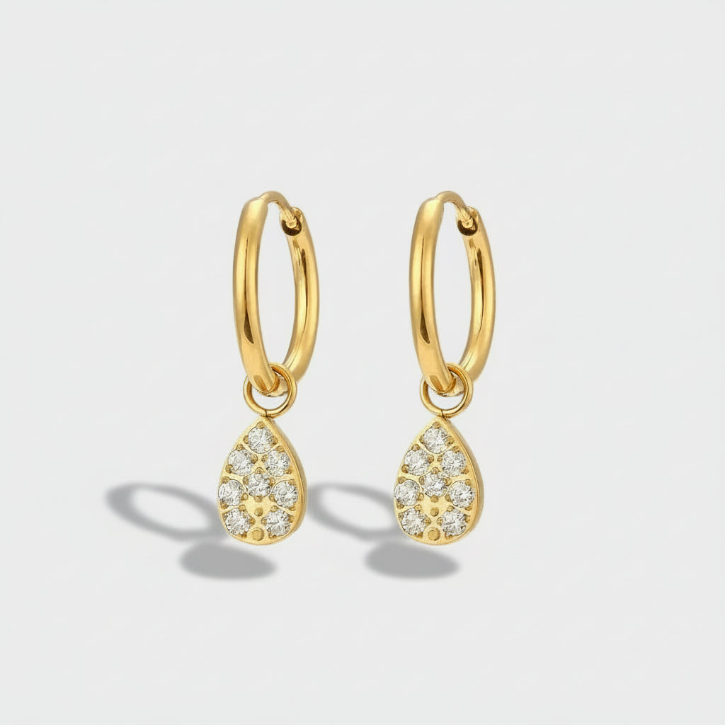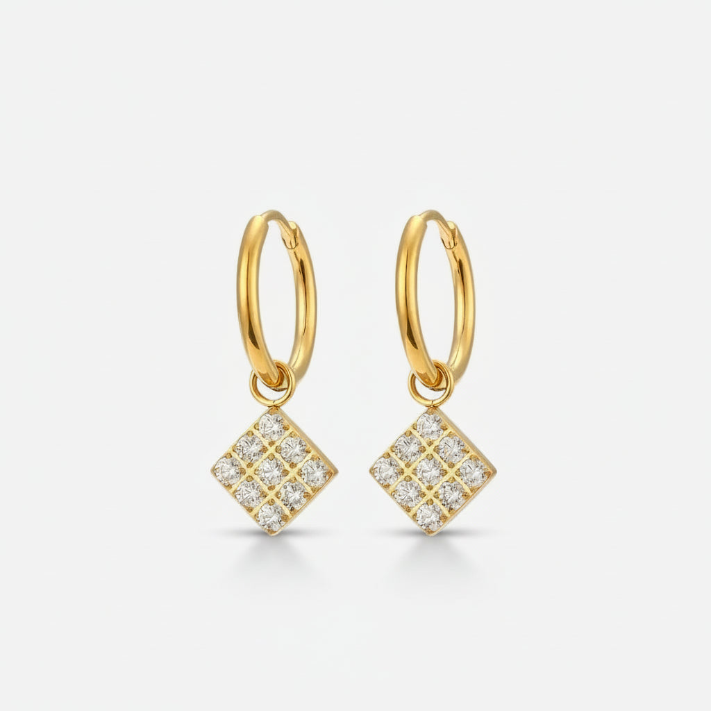 The Renee Gold Earrings combine sophisticated design with practical durability. Crafted from stainless steel-plated 18k gold and set with AAAAA Diamond Simulants, these earrings deliver a luxurious aesthetic without compromise. Their water, sweat, and heat-resistant construction ensures lasting brilliance through daily wear, while the hypoallergenic composition makes them ideal for sensitive skin. Available in multiple shapes to suit diverse preferences, the Renee earrings transition seamlessly from casual to formal occasions. Each pair arrives in sustainable packaging, reflecting a commitment to both quality craftsmanship and environmental responsibility.