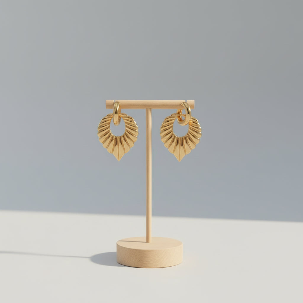 The Sybil Gold Leaf Earrings combine refined aesthetics with practical durability. Crafted from ethically sourced stainless steel plated with 18k gold, these earrings resist tarnishing and discoloration, maintaining their lustrous finish indefinitely. Their hypoallergenic composition makes them ideal for sensitive skin, ensuring all-day comfort without irritation. The intricate leaf design transitions seamlessly between casual and formal settings, while sustainable packaging reflects a commitment to environmental responsibility. A sophisticated addition to any jewelry wardrobe.