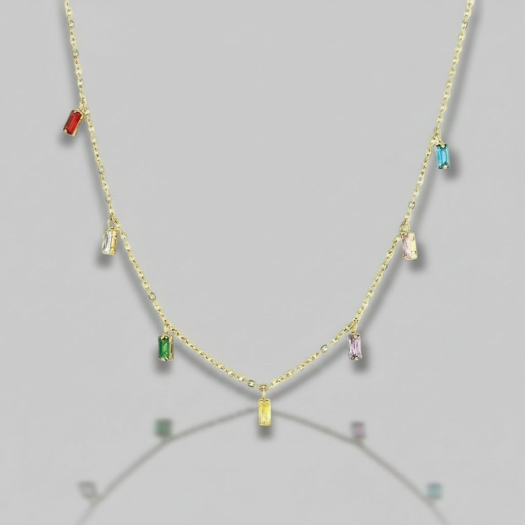 The Rhiannon Gemstone Necklace combines elegance with practicality. Featuring ethically sourced gemstones suspended from an 18k gold-plated stainless steel chain, this piece resists water, sweat, and heat without tarnishing. Hypoallergenic construction suits sensitive skin, while sustainable packaging reflects responsible craftsmanship. A refined accessory for everyday wear or special occasions.