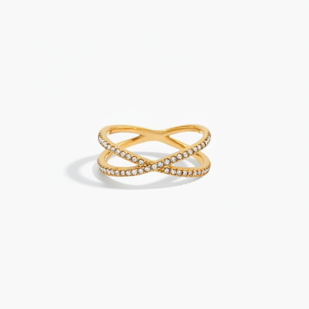 The Nia Gold Diamond Cross Ring merges timeless symbolism with contemporary elegance. This expertly crafted piece showcases radiant diamond simulants arranged in a striking cross motif, set within ethically sourced 18k gold-plated stainless steel. Engineered for durability, it resists water, perspiration, and heat without compromising its lustrous finish. Hypoallergenic properties make it ideal for sensitive skin and daily wear. Standing at 7mm in height, the ring delivers refined presence without excess. Packaged sustainably, it reflects a commitment to responsible luxury.