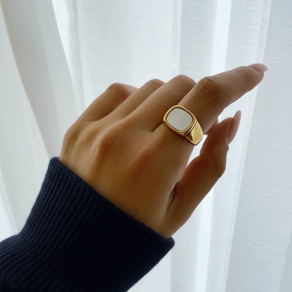 Elevate your jewelry collection with the timeless Nora – Smooth Shell Gold Ring.
