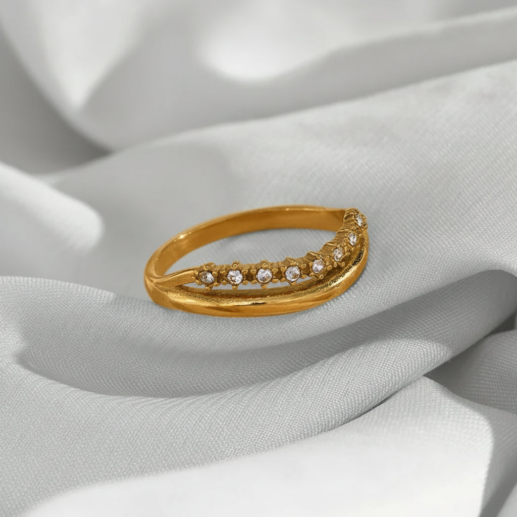 Introducing the Priscilla Diamond Simulant Gold Ring, an elegant and timeless piece designed to elevate any look. Featuring a brilliant arrangement of high-grade diamond simulants set in durable, gold-plated stainless steel, this ring delivers captivating sparkle perfect for both everyday wear and special occasions.