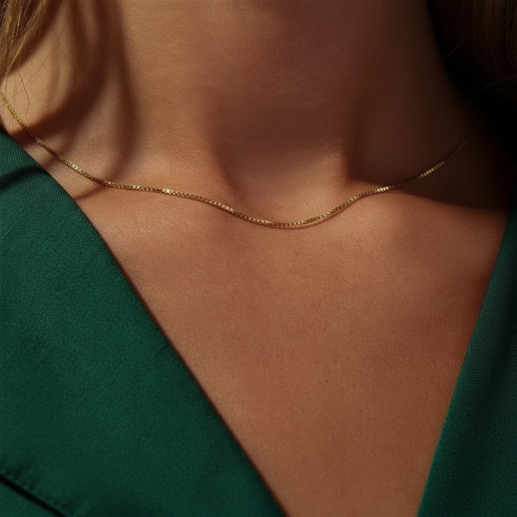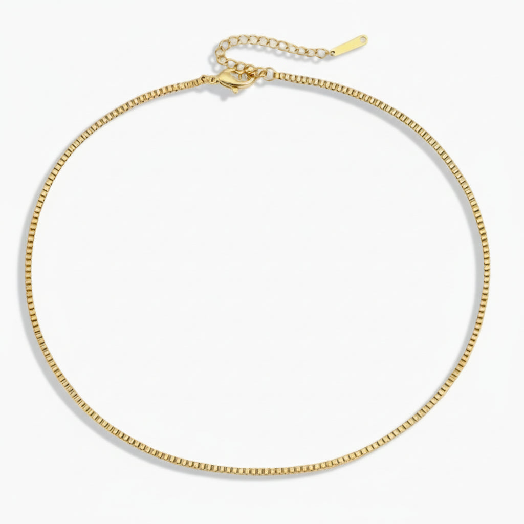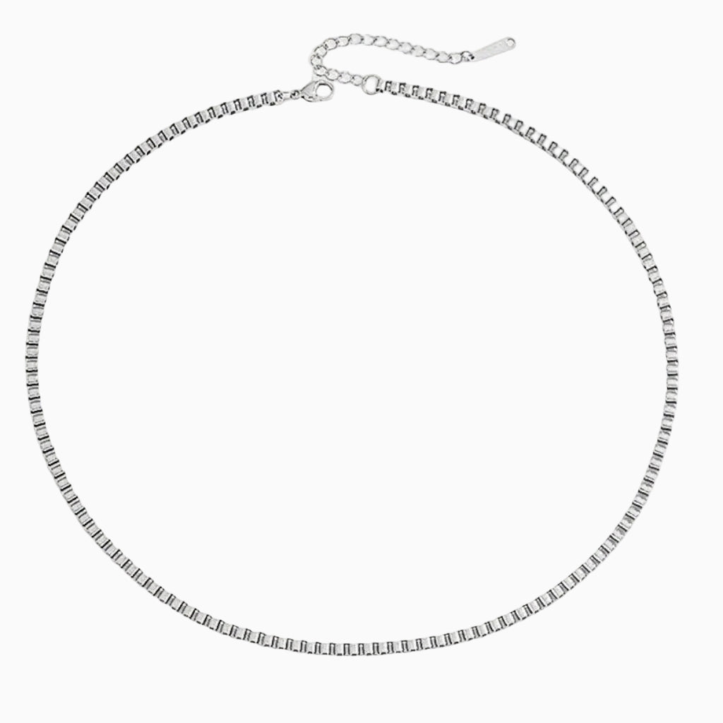 Elevate your everyday style with the Jocelyn Box Chain Necklace, a refined piece that seamlessly bridges contemporary edge with timeless elegance. The precisely crafted square links create visual interest and dimensional depth, offering versatile styling potential across both casual and formal occasions. A sophisticated foundation for layering or a striking standalone statement.