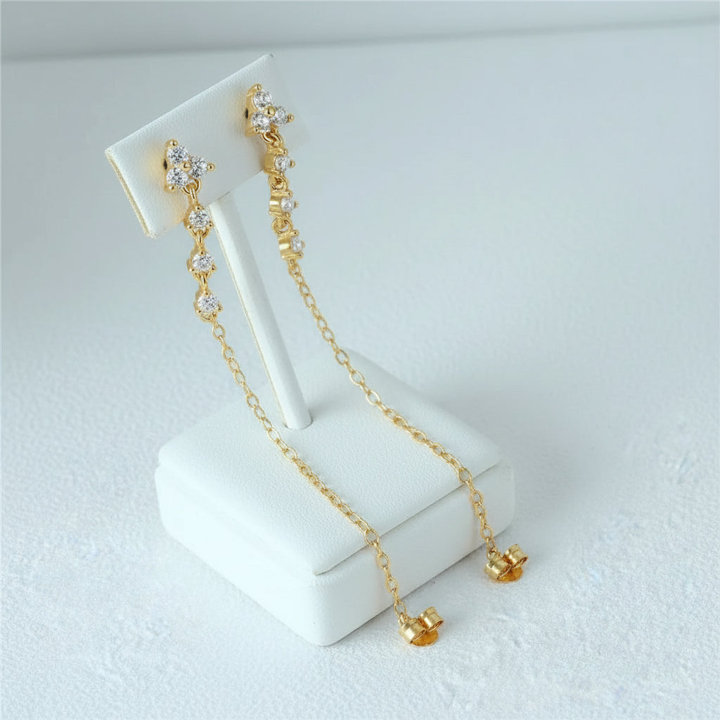 Discover refined sophistication with the Macey - Diamond Chain Stud, a striking piece that merges understated grace with contemporary flair. The signature looped chain design creates fluid visual interest, while three luminous teardrop diamonds command attention as the centerpiece. Engineered from ethically sourced gold-plated S925 sterling silver, this earring resists water, perspiration, and heat without fading or oxidation. Its hypoallergenic composition makes it an ideal choice for discerning wearers with sensitive skin who refuse to compromise on durability or aesthetic refinement.